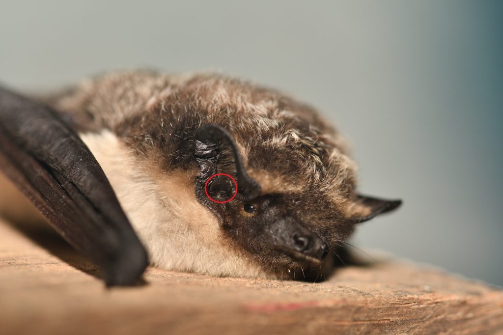 PS: Op de twee vleermuisfoto’s is de tragus rood omcirkeld.